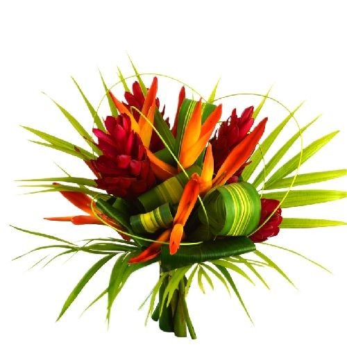 Le bouquet rond avec des fleurs exotiques en bulle d’eau offre une fusion unique entre l’élégance classique d’un bouquet rond et l’exotisme vibrante de fleurs provenant de contrées lointaines.